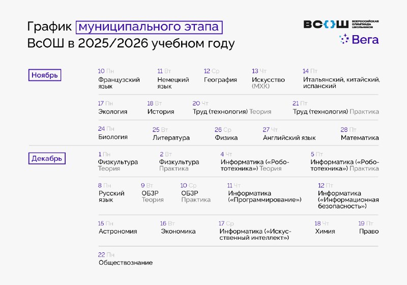График проведения школьного этапа Олимпиады в 2025-2026 учебном году